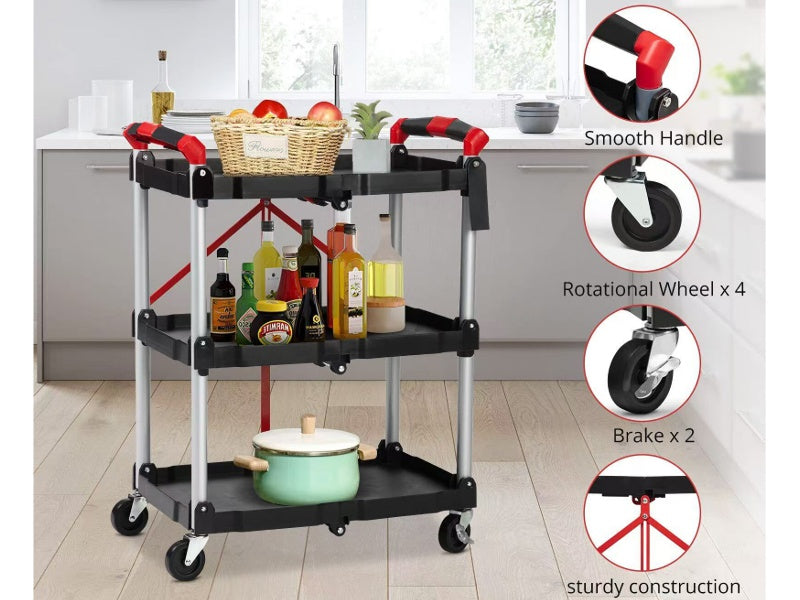 Carro auxiliar plegable de 3 bandejas