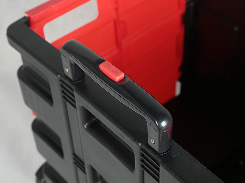 - Botón lateral para separar los paneles frontales y posteriores para plegar el carro.
