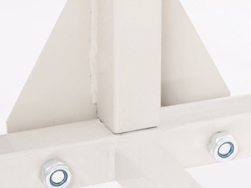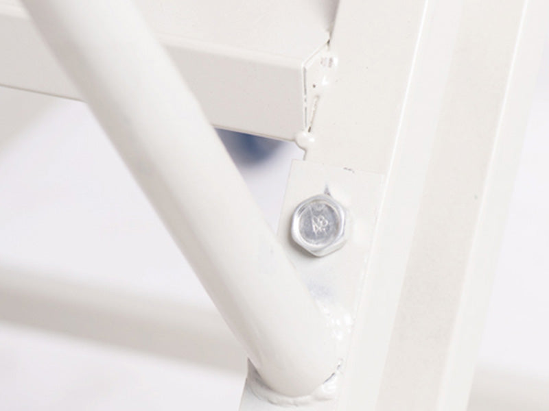 Fabricada con estructura metálica de alta resistencia, soporta hasta 250 kg de carga y cuenta con soportes diagonales en las coyunturas, que refuerzan la estabilidad durante el uso. Incorpora peldaños con goma antideslizante y 4 ruedas giratorias de PU con freno, facilitando el desplazamiento y asegurando una correcta fijación durante la operación.